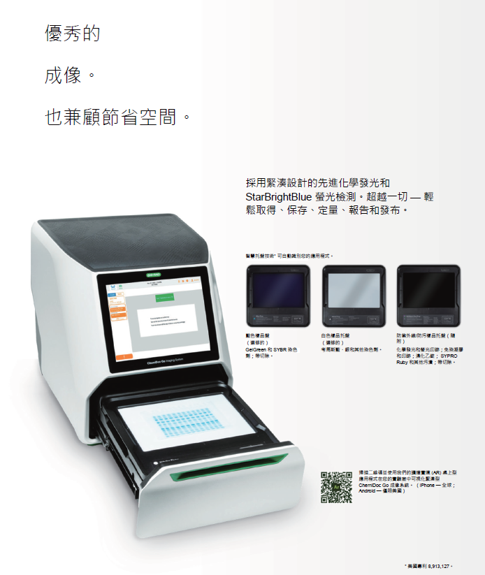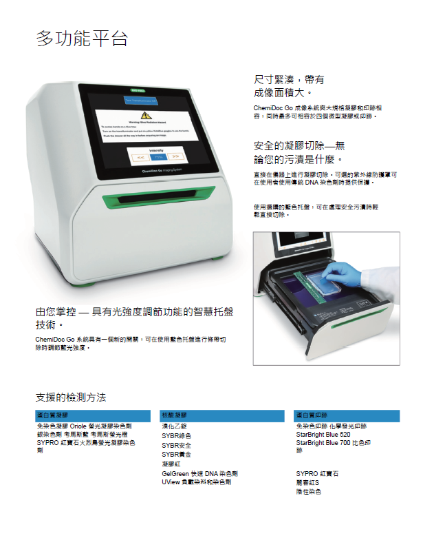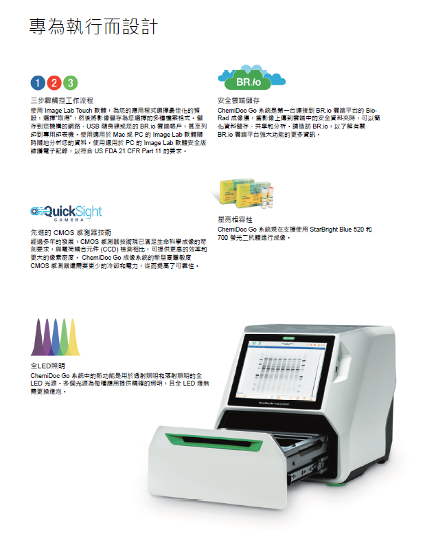 ChemiDoc GO 影像系統集靈敏度、多功能性和易用性於一身,是您實驗室的理想選擇。