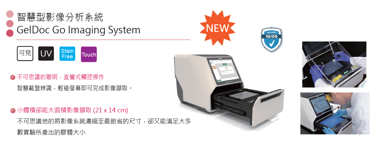 GelDoc Go 凝膠成像系統採用緊湊且先進的封裝,為您提供桌上型成像解決方案。取得核酸和蛋白質凝膠的高解析度、出版品質的影像。適用於大成像區域的先進光學設計使您可以同時對多達四個微型凝膠進行成像,但仍保持緊湊的尺寸。使用 Image Lab Touch 軟體輕鬆設定與控制 GelDoc Go。強大的力量推動您的研究向前發展。夠小,適合任何地方。