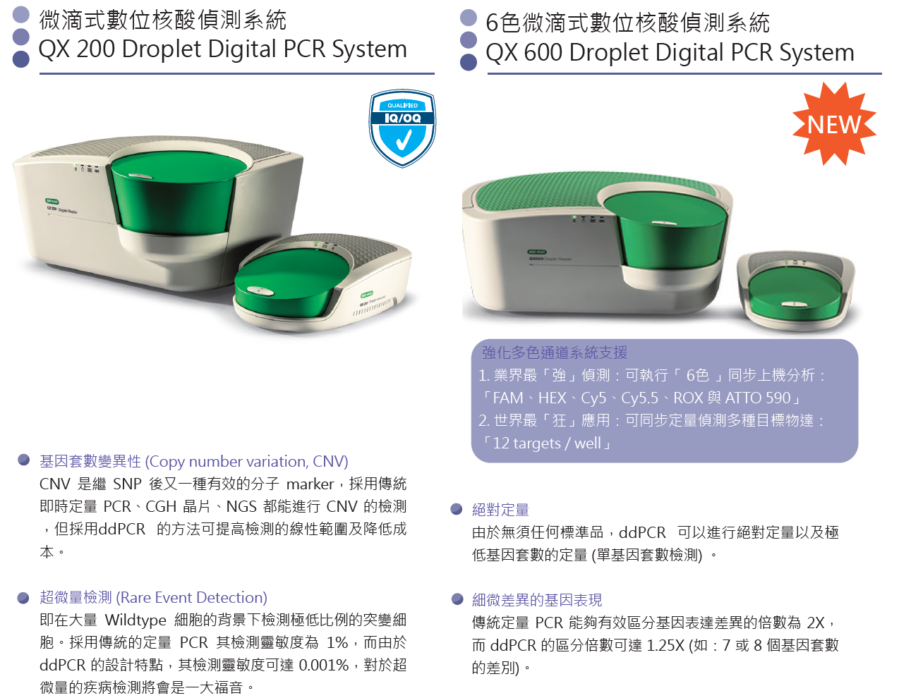 Bio-Rad 的第二代數位 PCR 系統使用 EvaGreen 或 TaqMan 水解探針對目標 DNA 或 RNA 分子進行絕對定量。適用於各種應用的無與倫比的靈敏度和精度。
