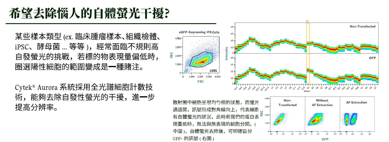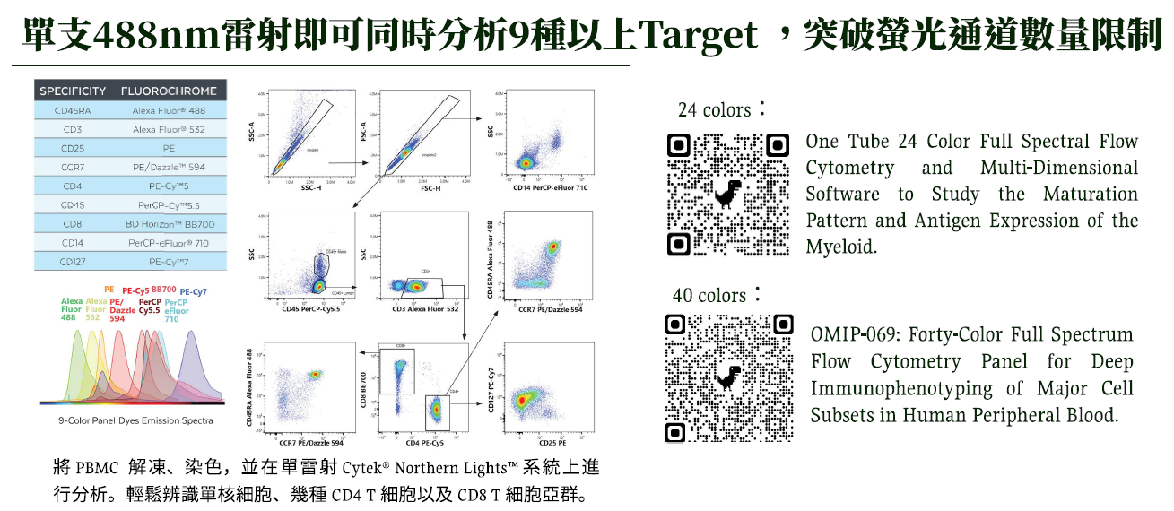 Northern Lights 儀器採用 Cytek 強大的 Full Spectrum Profiling™ (FSP™) 技術,配備一到三個雷射系統,無需為每個應用重新配置系統,即可實現各種新的螢光染料組合