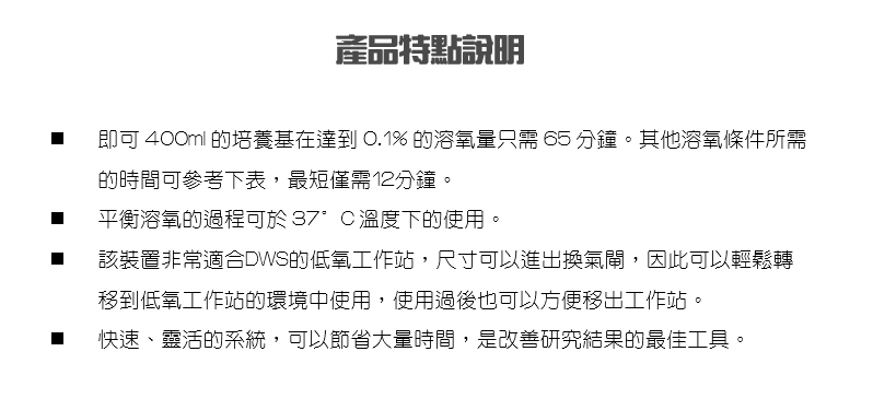 當細胞培養基從環境空氣中進入低氧工作站時,如果培養基未與低氧環境達到溶氧平衡的話,細胞在更換培養基過程仍可能無意中暴露於過量的氧氣中,培養基中的溶氧量需要非常長的時間才能與周圍的大氣達到平衡。Whitley Media Conditioner 培養基溶氧快速平衡器具備英國專利號 GB2579704,可以快速平衡培養基的溶氧量來確保您的研究更加準確。