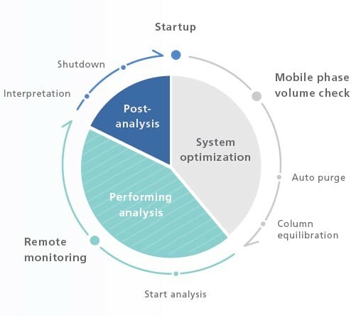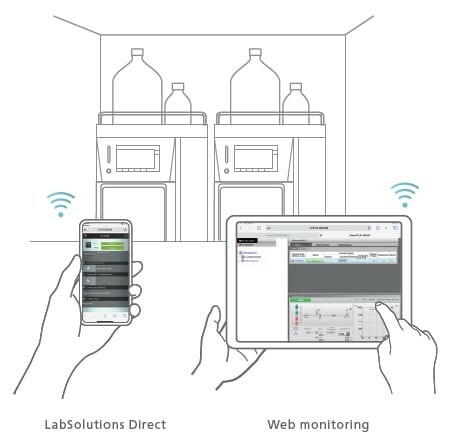 使用 LabSolutions Direct,分析人員可以遠程操作儀器,並使用手提電腦或智慧型手機的網絡瀏覽器來進行預先配置和批量分析。還可以遠程監控儀器狀態和觀察層析圖譜,以減少往返實驗室所需的時間和勞動力,從而提高工作效率,疫情下實驗人員一樣可以居家工作。