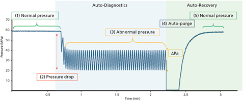 在連續進樣的層析實驗過程中,當系統有氣泡進入時,系統會自我偵測,並自動Purge流洗趕除氣泡後再重新進樣。