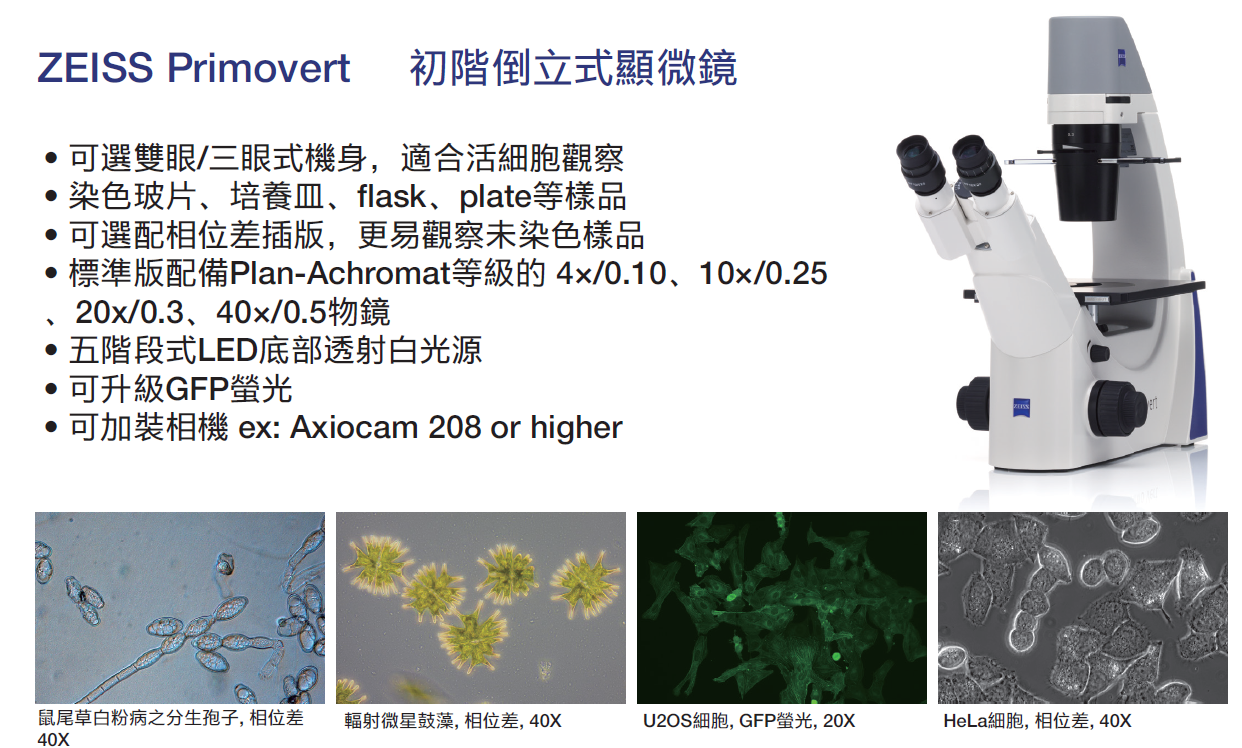 將蔡司Primovert放置在無菌工作台中。相位差觀察染色細胞和螢光觀察GFP標記細胞,既快速又高效。這款倒立式顯微鏡是癌症和基因研究的理想助手。借助Primovert HDcam和成像應用程式Labscope,您可以與同事一起在無菌環境中獨立觀察和討論細胞樣品。